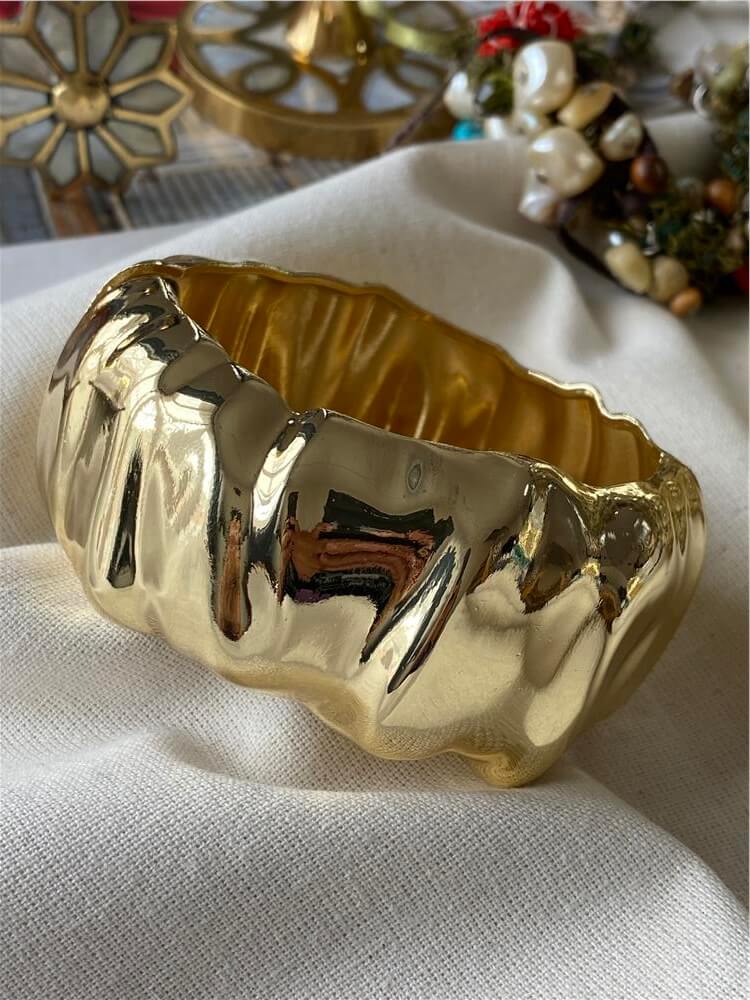 Moda LUKKA - 14K Kıvrımlı Geniş Kelepçe