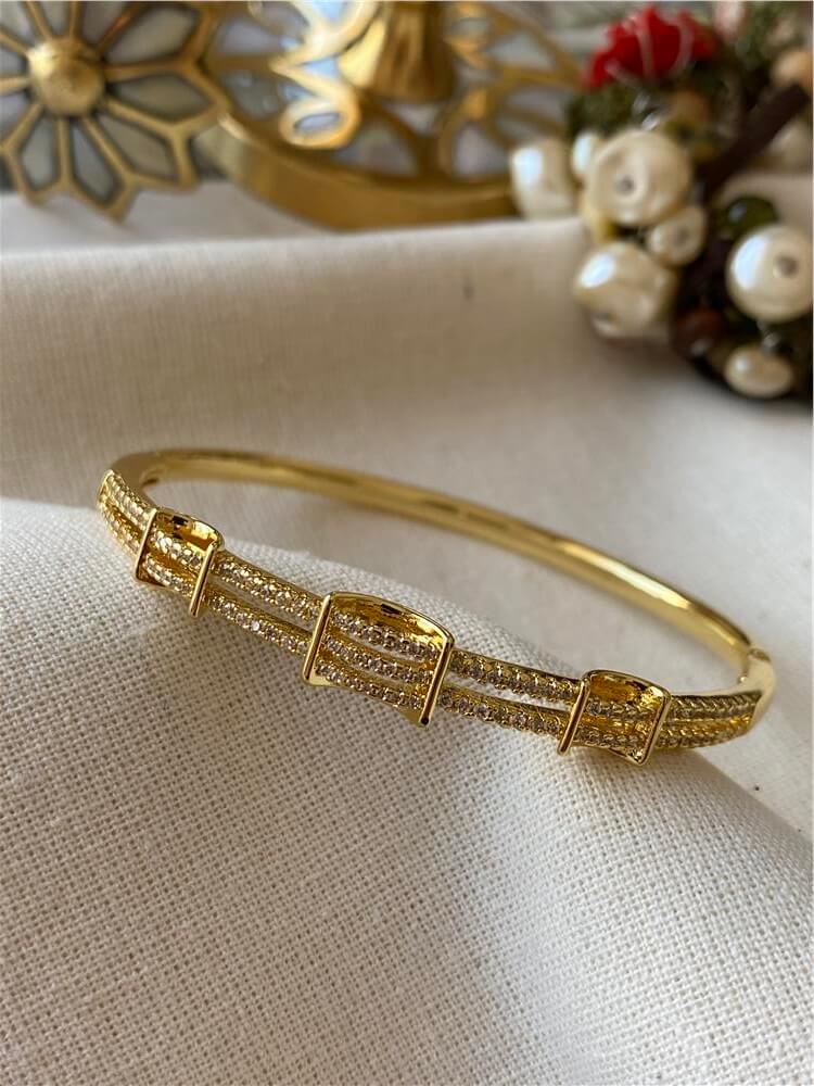 14K Taşlı Kıvrık Plaka Detaylı Kelepçe (31433)
