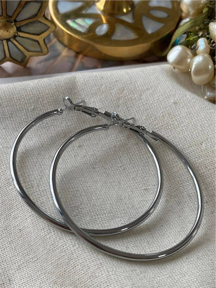 5 cm Silver İnce Halka Küpe (32390)