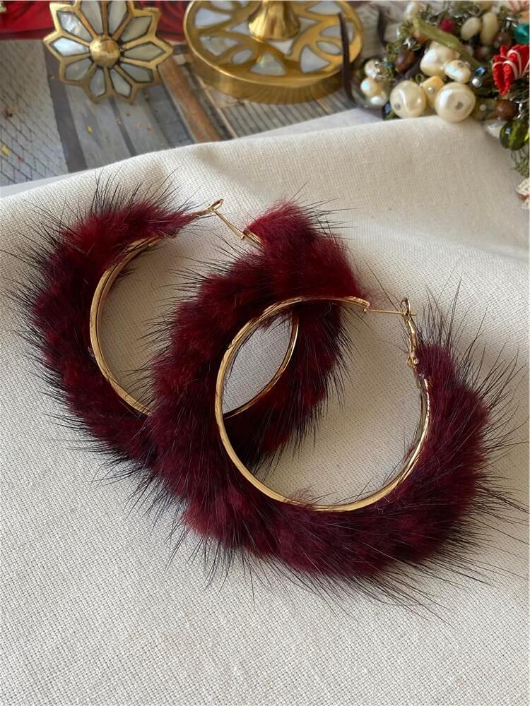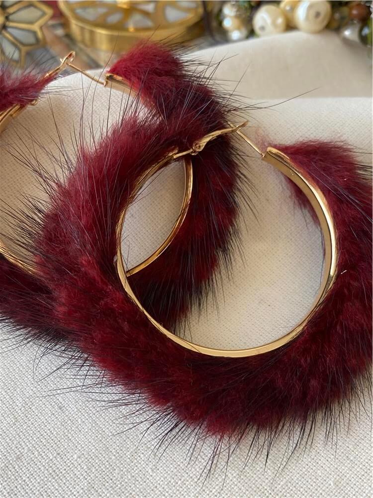Moda LUKKA - Bordo Tüylü Halka Küpe