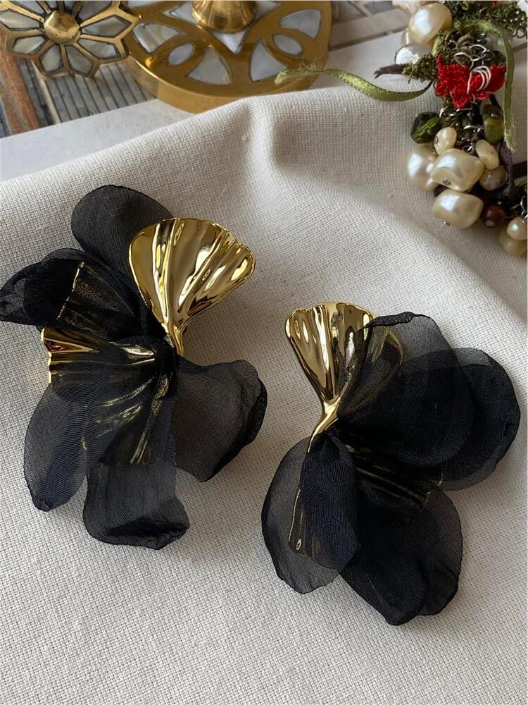 Büyük Siyah Tüllü Yaprak Küpe (31666)
