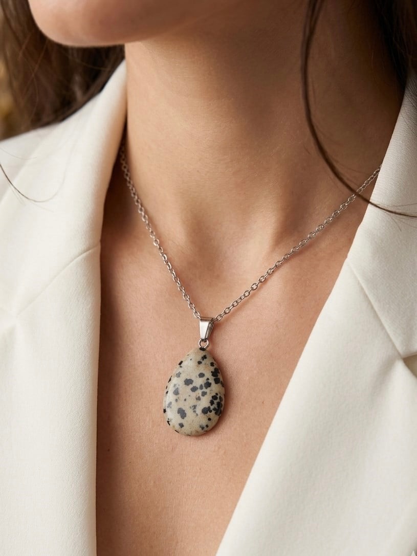 Çelik Damla Model Desenli Jasper Kolye (34408)