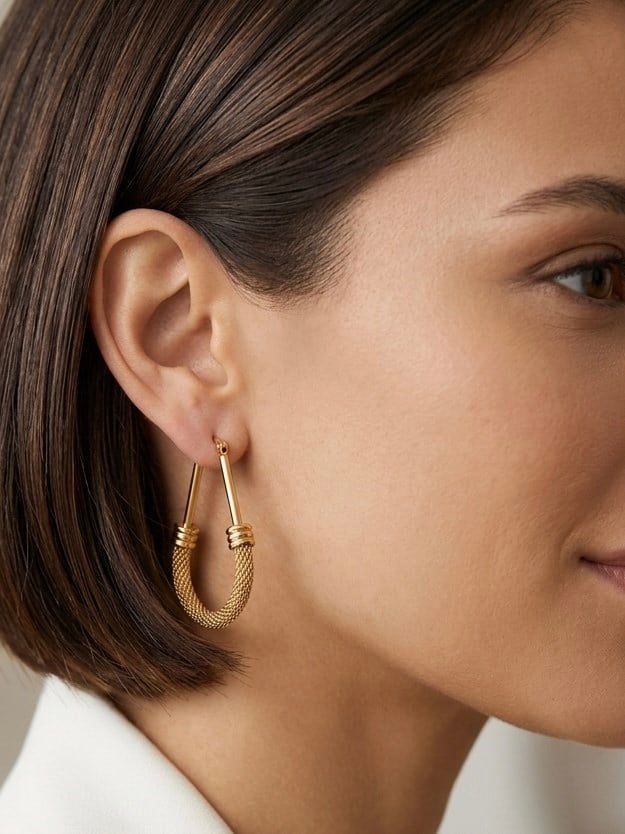 Moda LUKKA - Çelik Hasır Detaylı Çengel Küpe