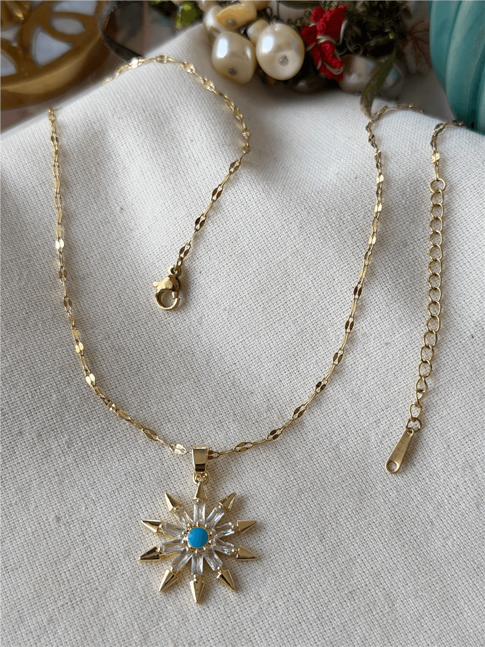 Moda LUKKA - Çelik Mavi Mineli Taşlı Ok Tasarım Kolye