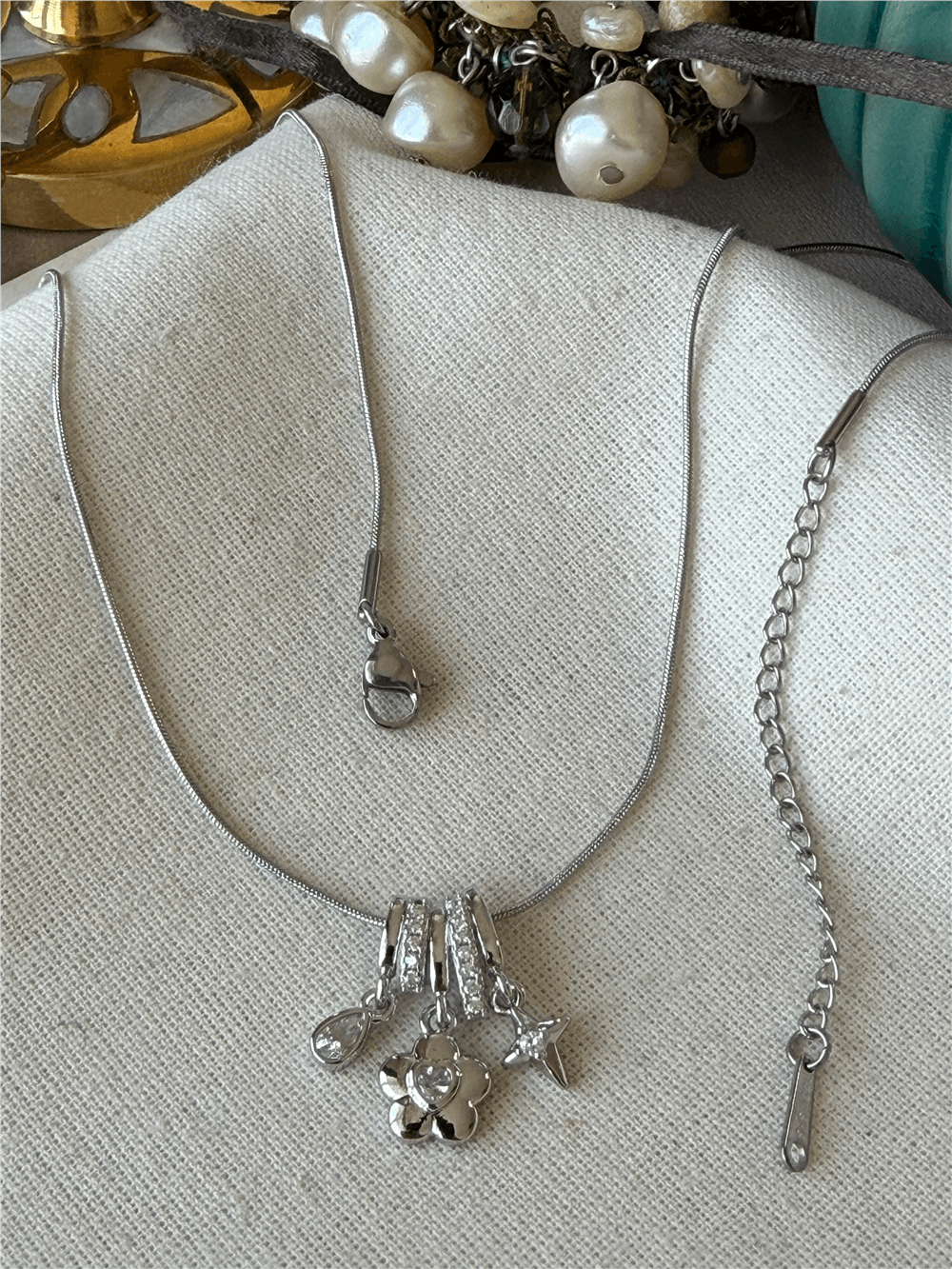 Çelik Silver Taşlı Çiçek ve Yıldız Charmlı Kolye (34978)