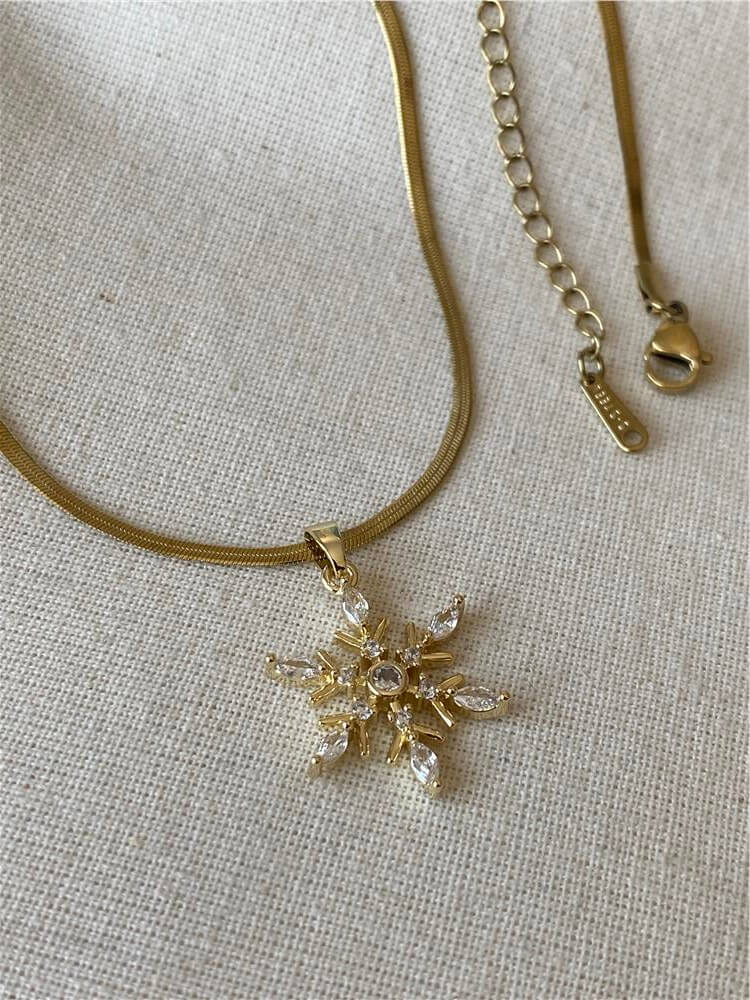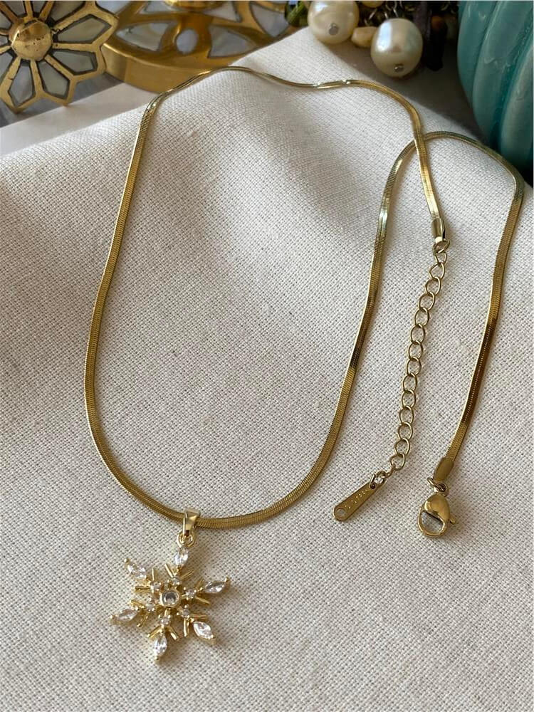 Moda LUKKA - Çelik Taşlı Kar Tanesi Charmlı Kolye