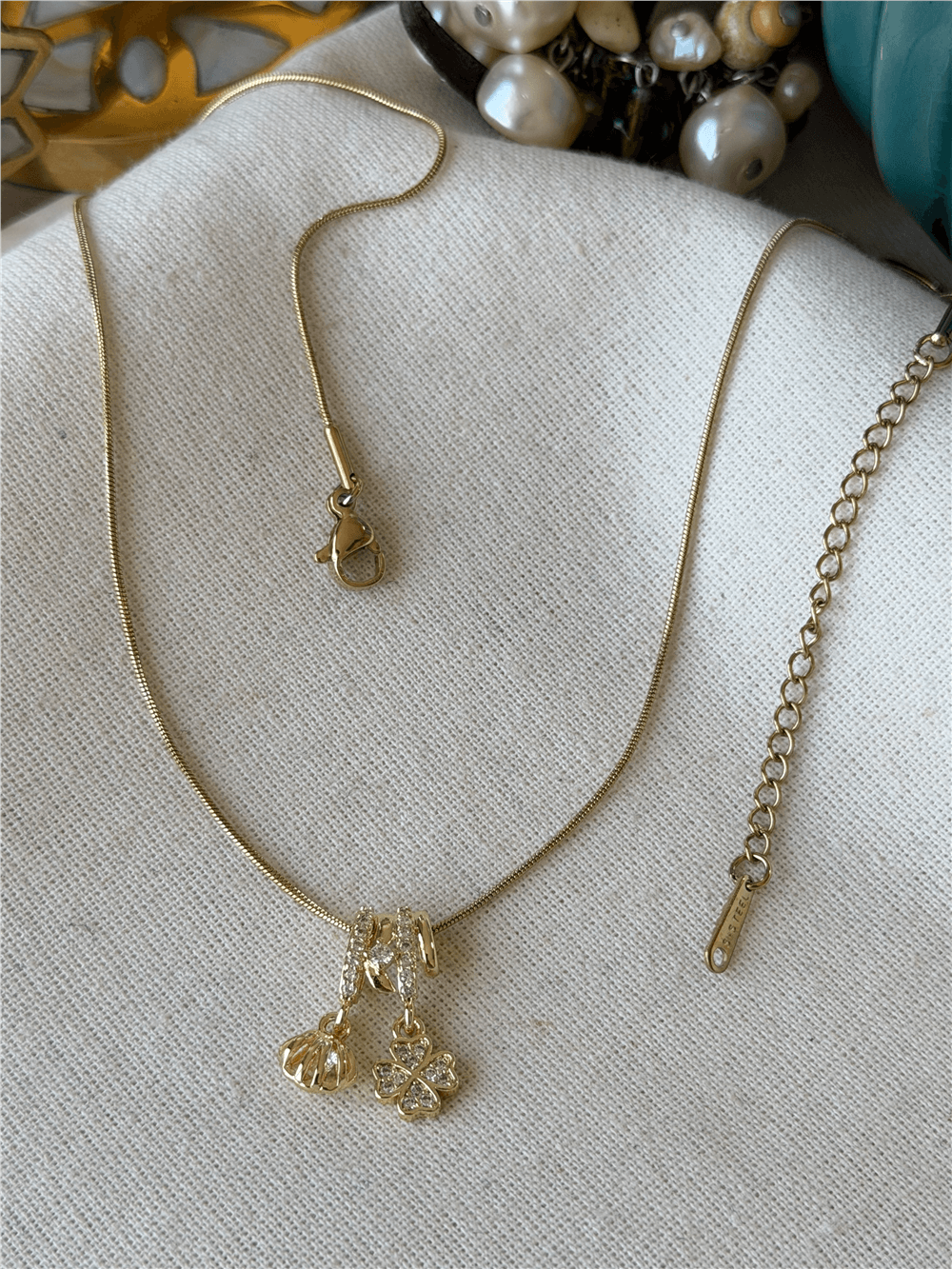 Çelik Taşlı Yonca ve İstiridye Charmlı Kolye (34975)