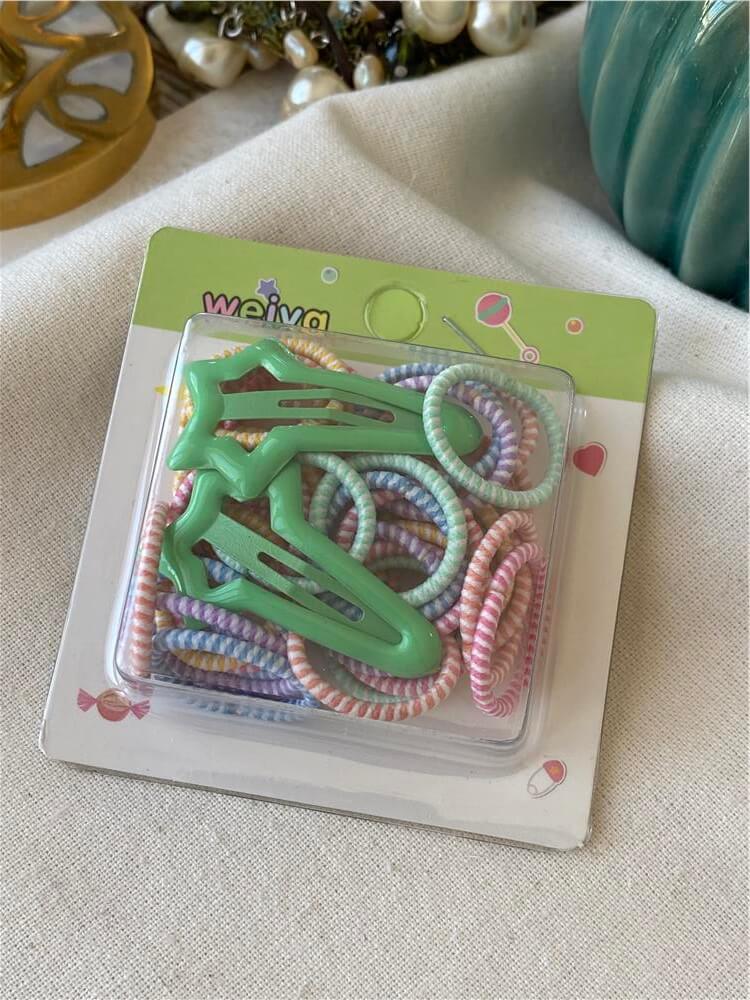 Çıtçıtlı Yeşil Yıldız Detaylı Mini Lastik Toka Seti (31195)