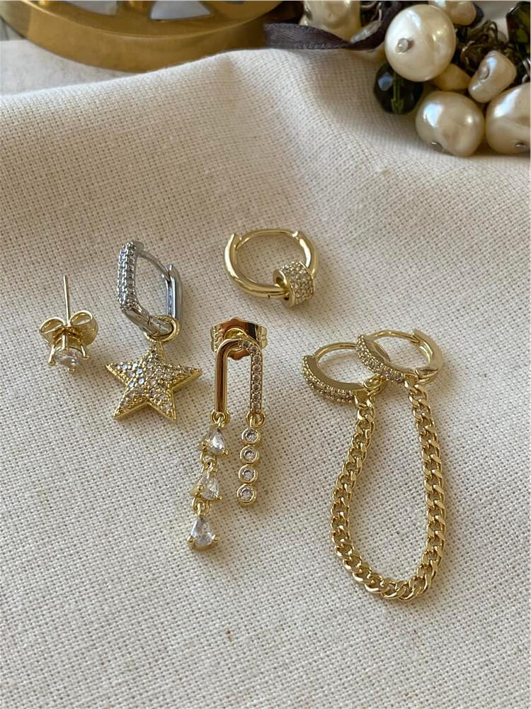 Çoklu 14K Silver Taş Detaylı Çeşitli Şekiller Küpe Seti (31497)