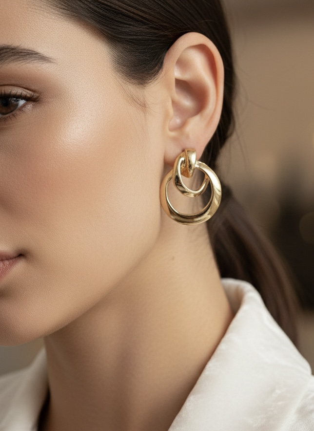 Gold İç içe Halka Küpe (32355)