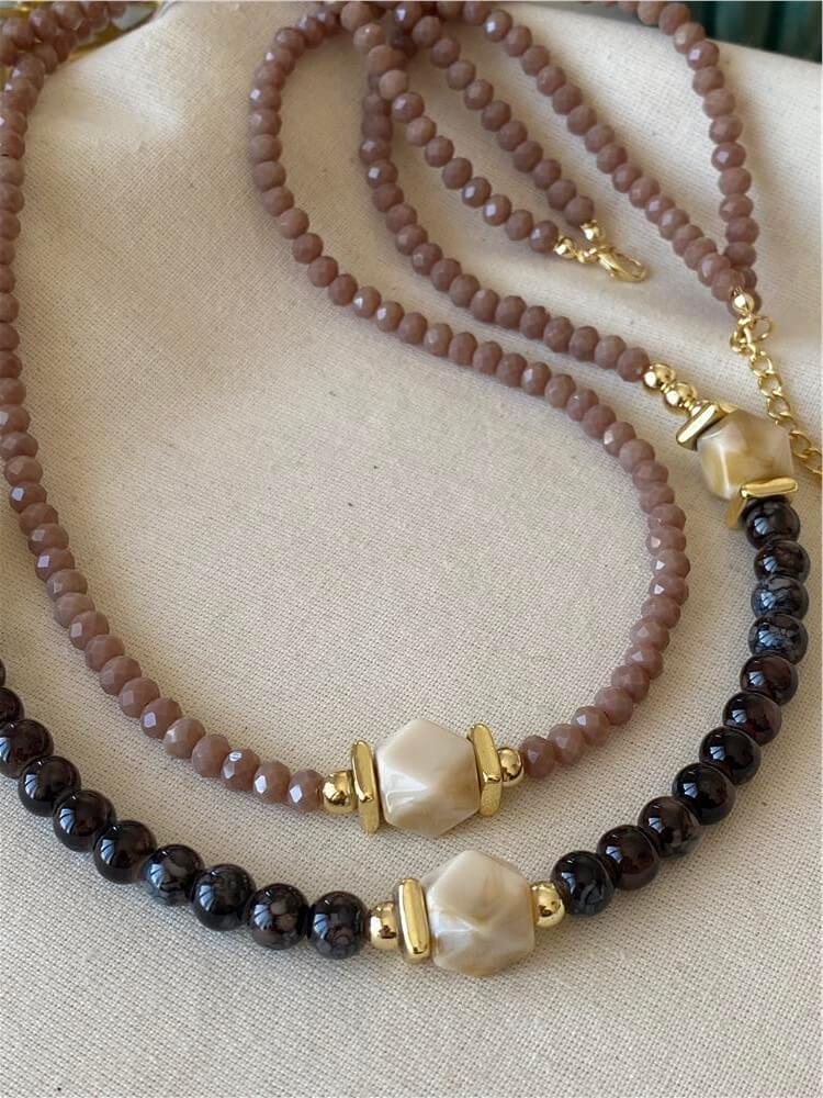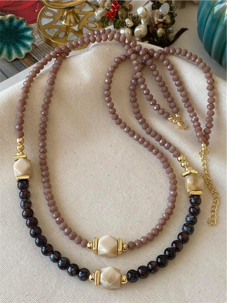 İkili Krem Taş Detaylı Vizon Boncuk Kolye (31547)