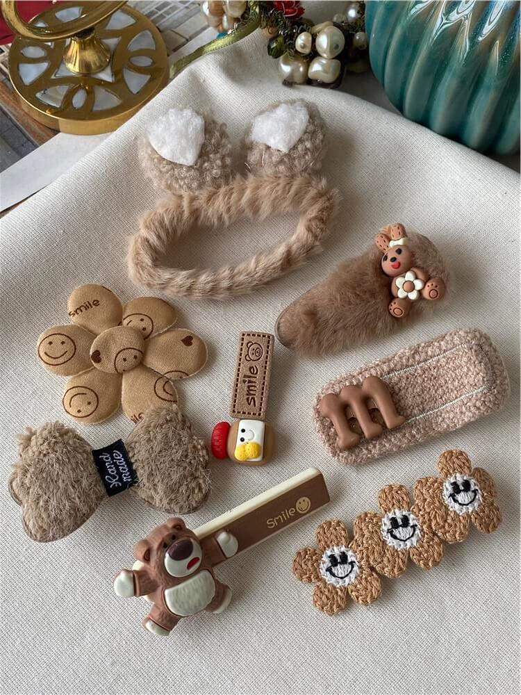 Moda LUKKA - Kahverengi Peluş Smile Toka Seti