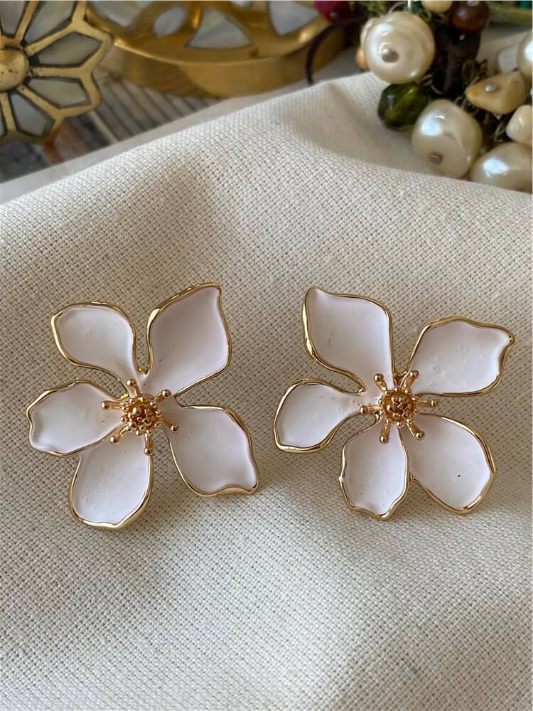 Moda LUKKA - Mat Beyaz Çiçek Küpe