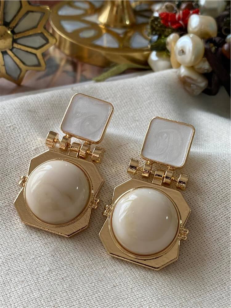 Mineli Krem Renkli Çift Plaka Küpe (32979)