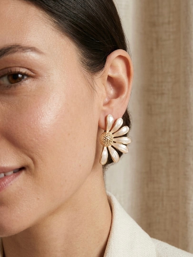 Moda LUKKA - Mineli Yarım Papatya Küpe
