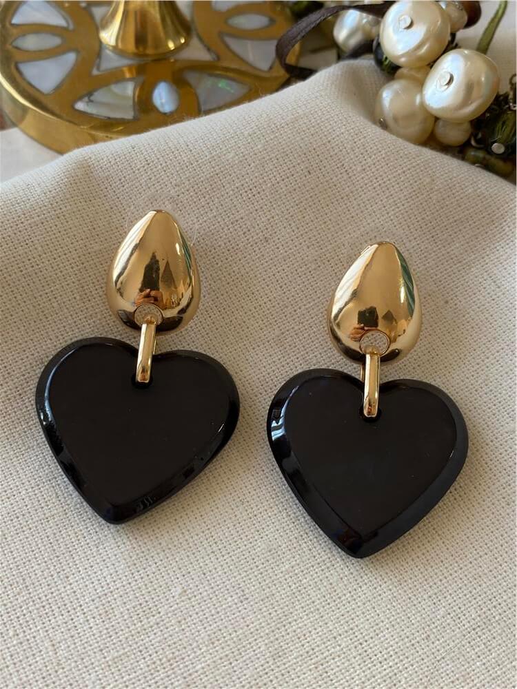 Moda LUKKA - Sallantılı Siyah Kalp Küpe