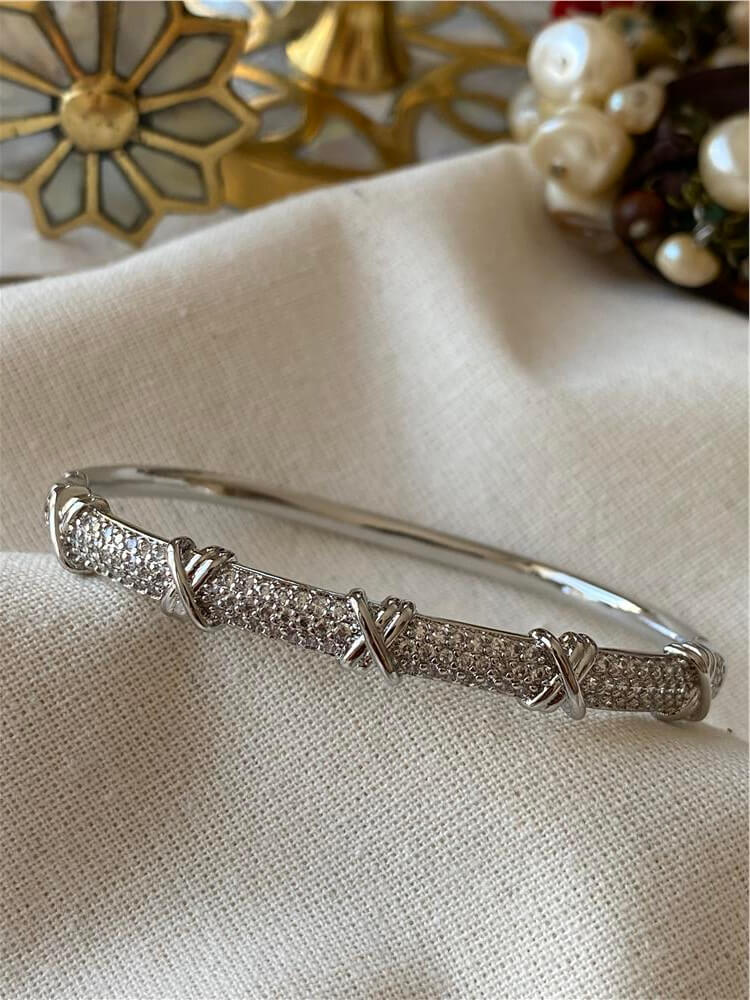 Moda LUKKA - Silver Taşlı X Desenli Kelepçe