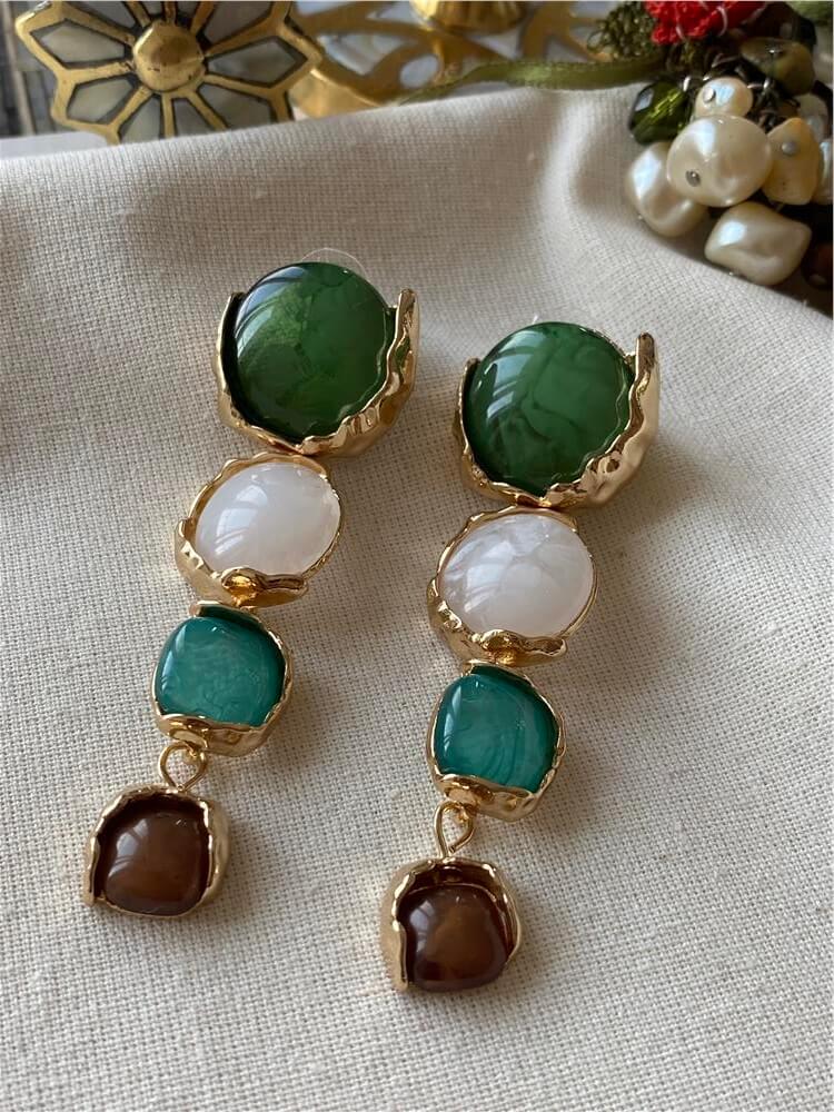 Moda LUKKA - Sıralı Yeşil Taşlı Küpe