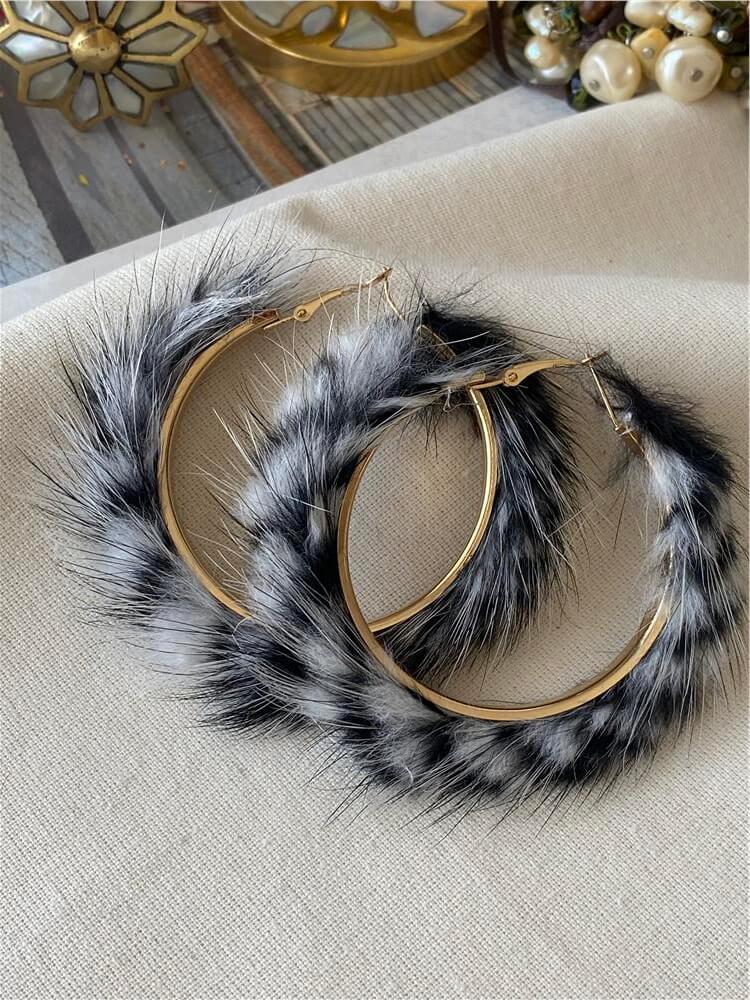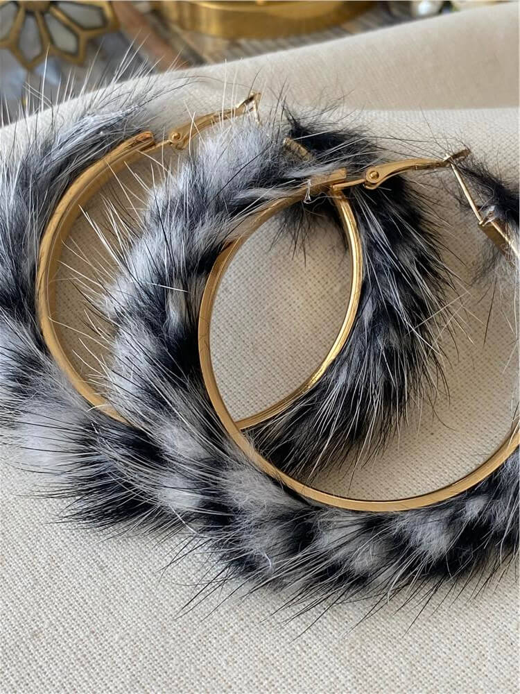 Siyah Beyaz Tüylü Halka Küpe (31473)