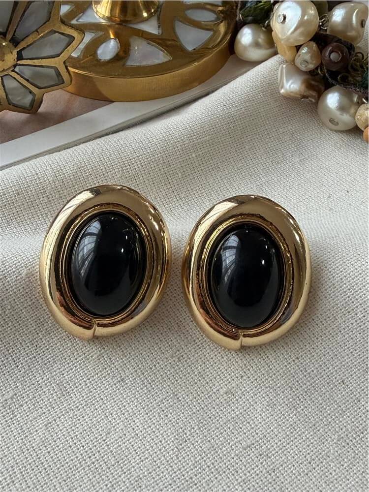 Moda LUKKA - Siyah Taşlı Mini Oval Küpe
