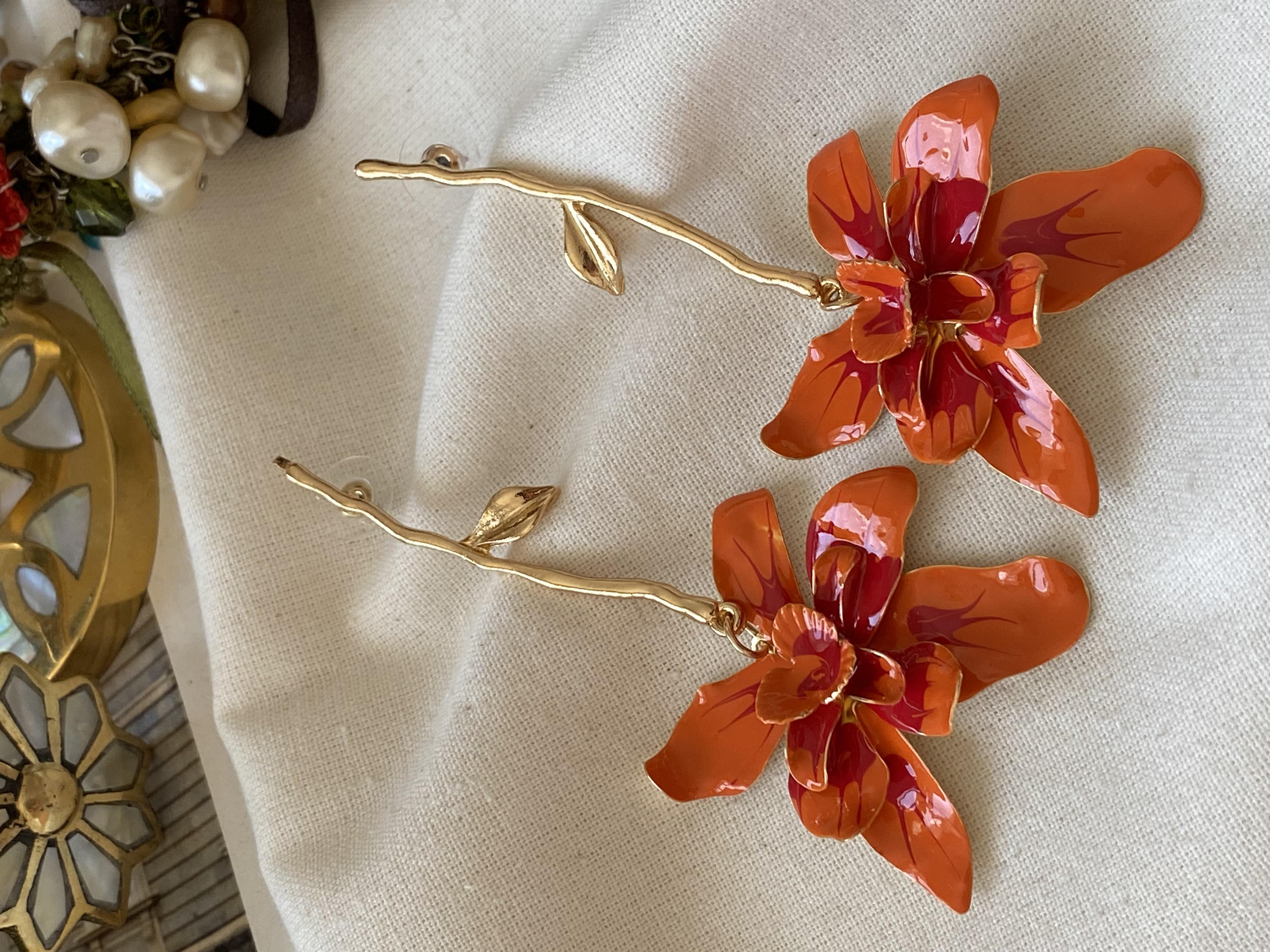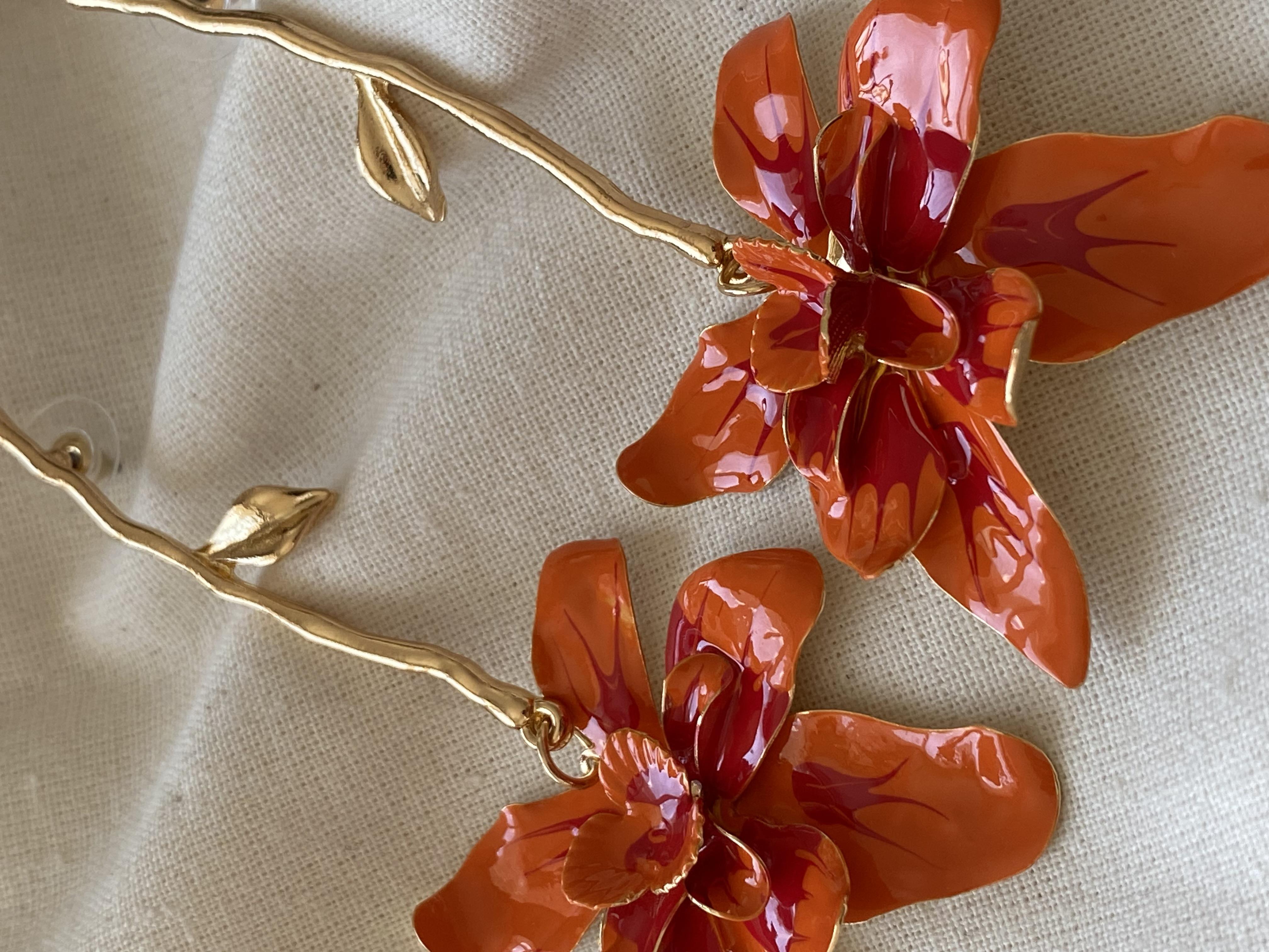 Moda LUKKA - Tasarım Turuncu Çiçek Küpe