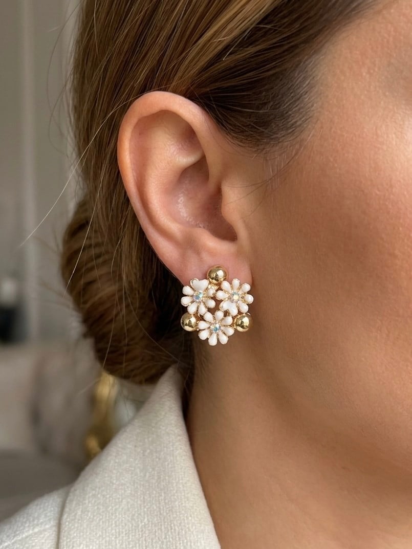 Taşlı Beyaz Çiçekler Küpe (34685)