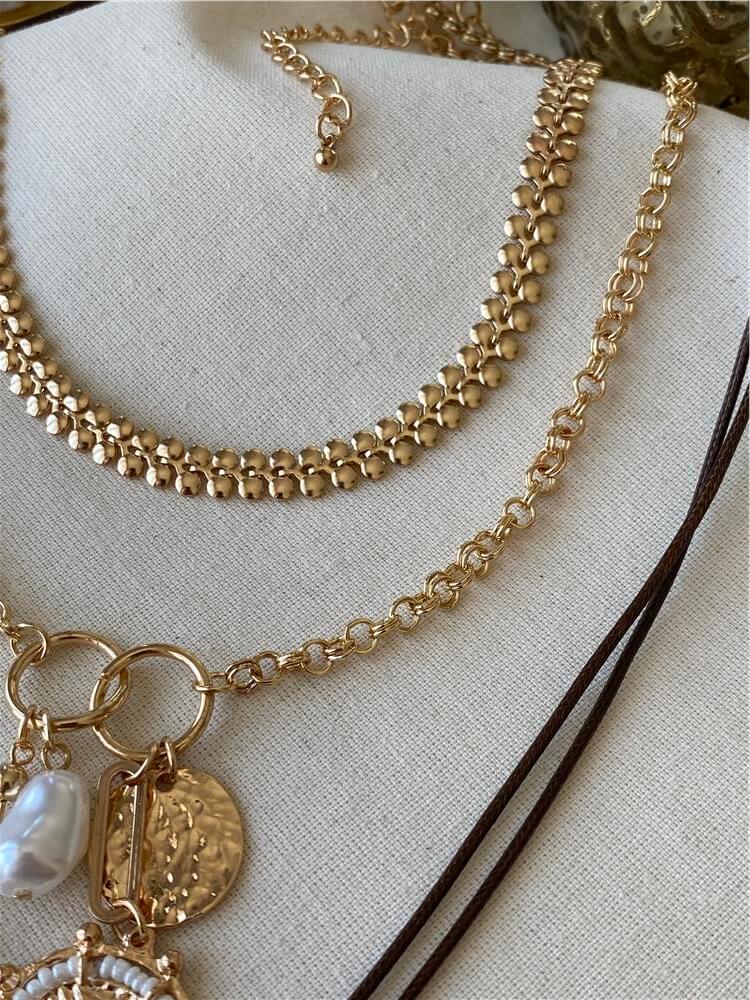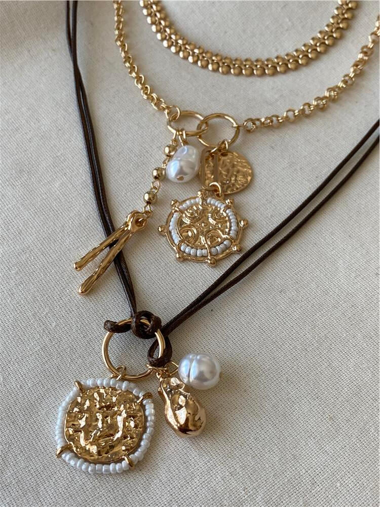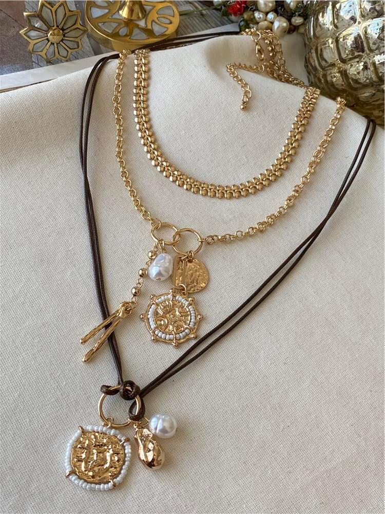 Üçlü Deri İp Detaylı Charmlı Kolye (31773)