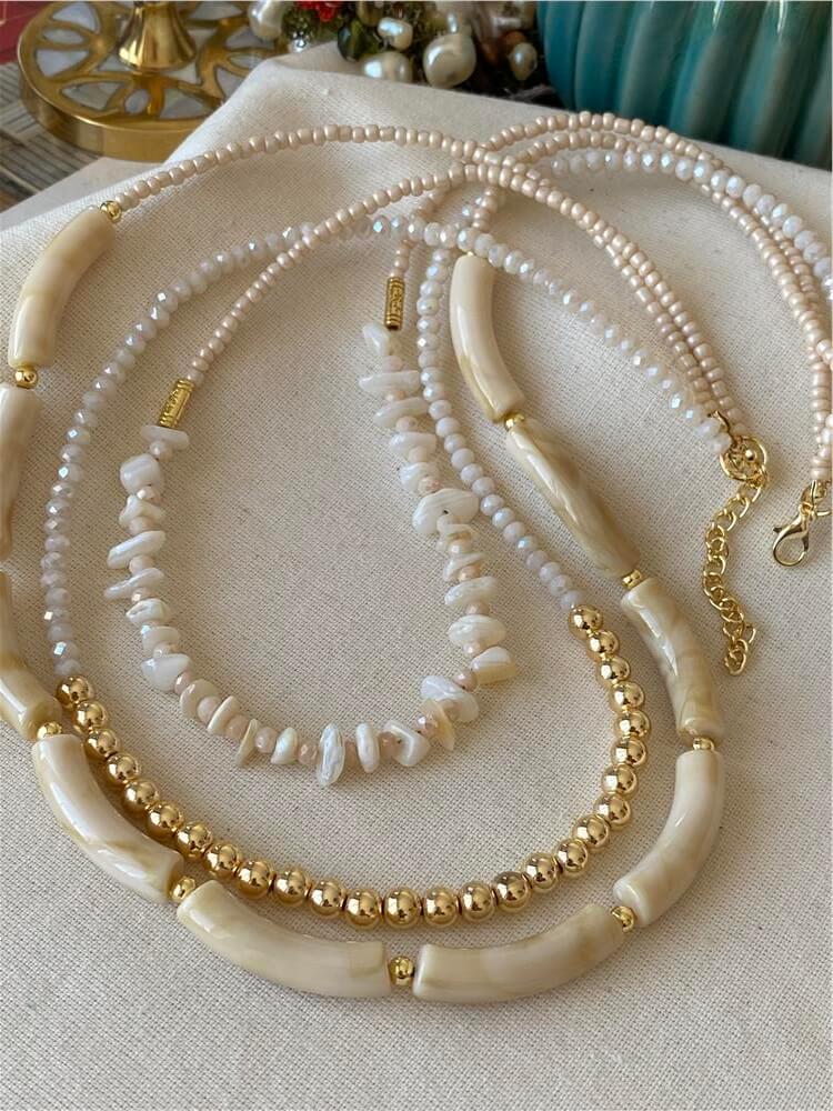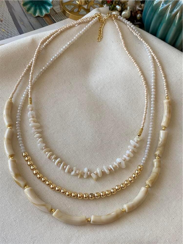 Moda LUKKA - Üçlü Dorika Detaylı Beyaz Zarif Kolye