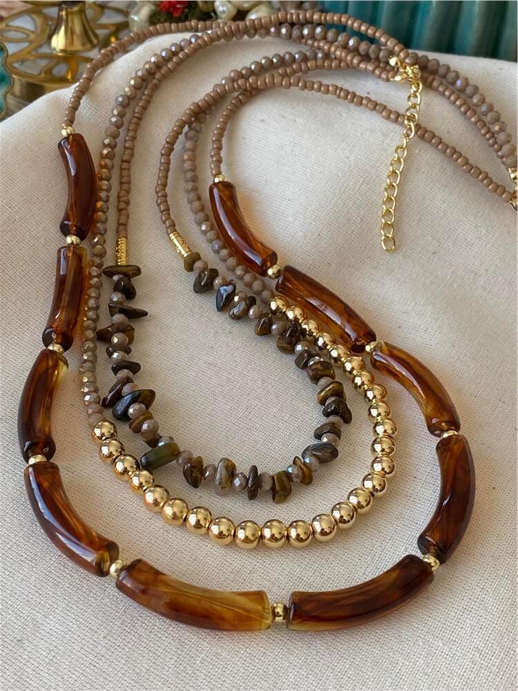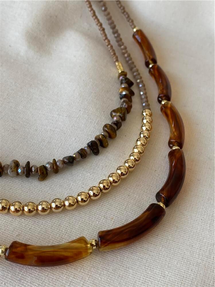 Moda LUKKA - Üçlü Dorika Detaylı Kahverengi Zarif Kolye