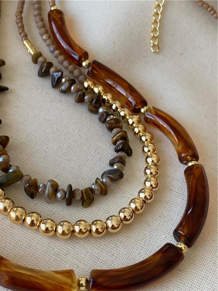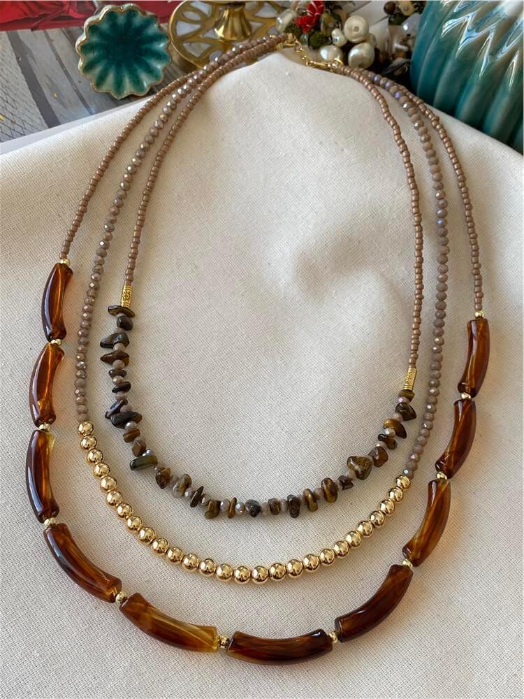 Üçlü Dorika Detaylı Kahverengi Zarif Kolye (31548)