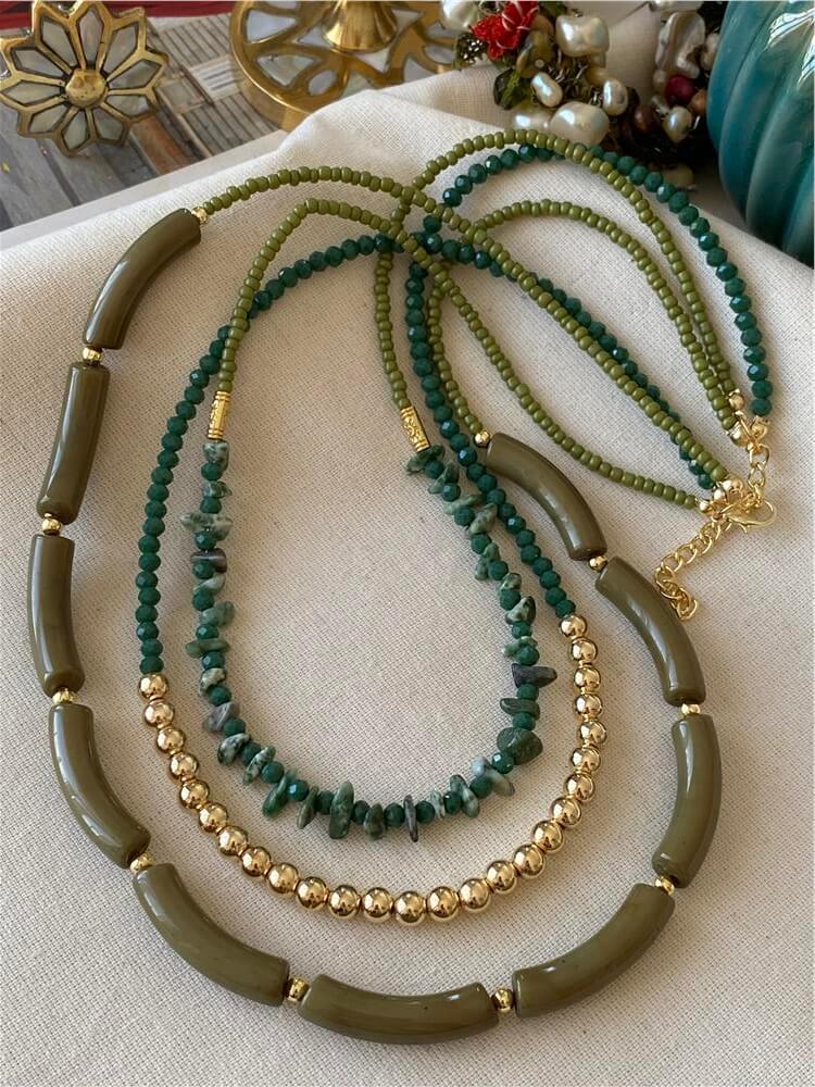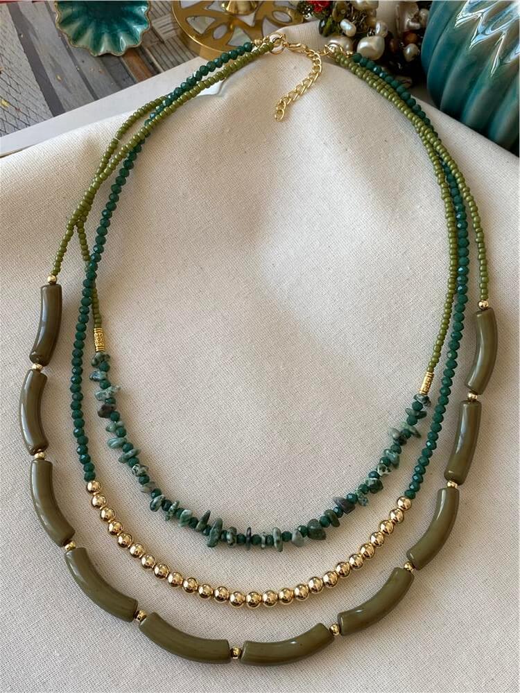 Moda LUKKA - Üçlü Dorika Detaylı Yeşil Zarif Kolye