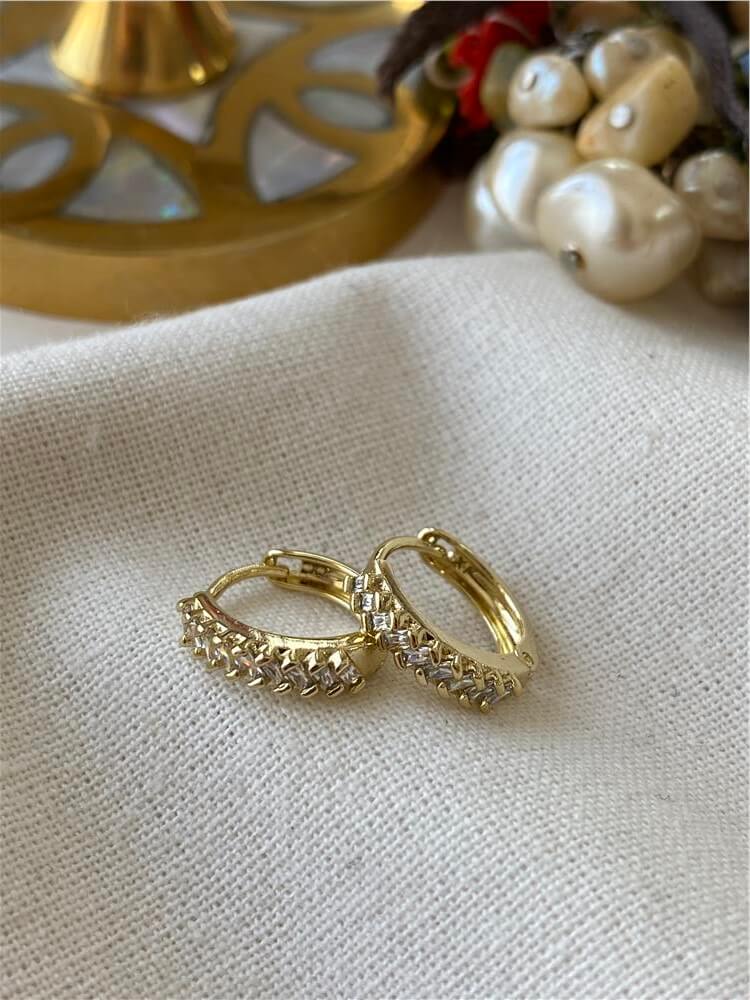 VIP 14K Çapraz Taşlı Mini Halka Küpe (31348)
