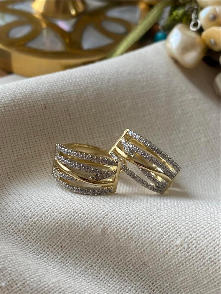 Moda LUKKA - VIP 14K Çift Renk Taşlı Çizgili Küpe