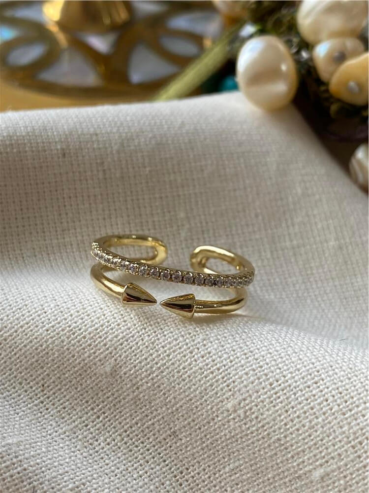 Moda LUKKA - VIP 14K Çift Sıra Ok Model Ayarlanabilir Yüzük