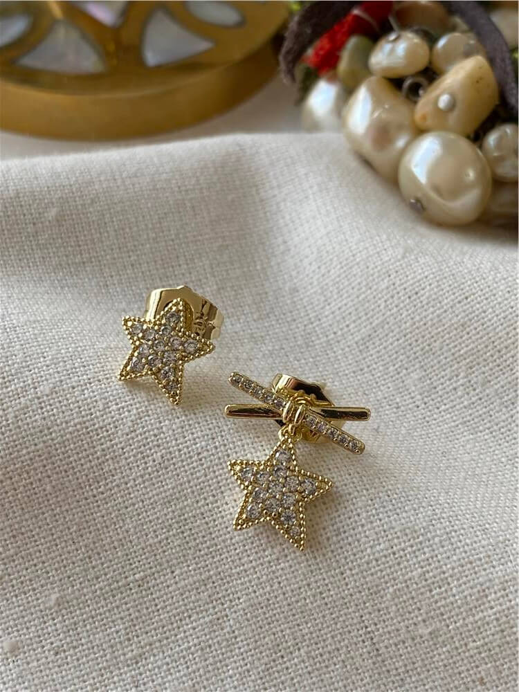 Moda LUKKA - VIP 14K Cross Detaylı Taşlı Sallantılı Yıldız Küpe