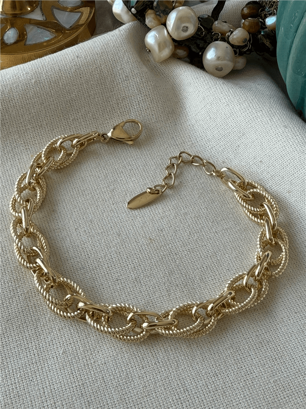 Moda LUKKA - VIP 14K Geçmeli Desenli Halkalar Bileklik