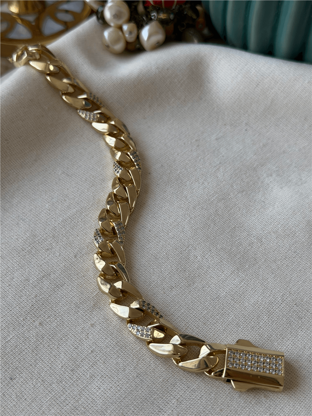 Moda LUKKA - VIP 14K Gurmet Model Taşlı Kalın Zincir Bileklik