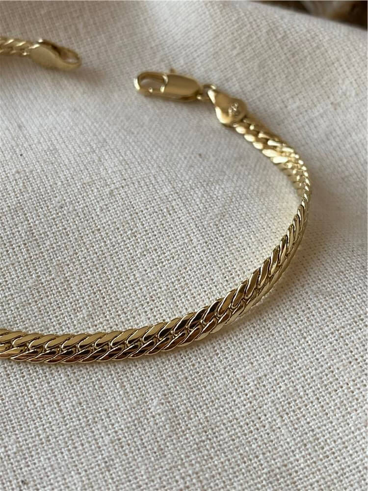 Moda LUKKA - VIP 14K İnce Yassı Sık Örme Zincir Bileklik