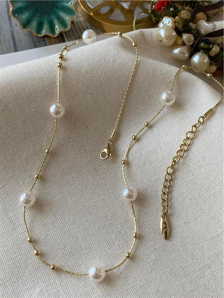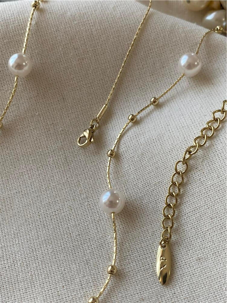 Moda LUKKA - VIP 14K İnci Detaylı Çift Dorikalı Zincir Kolye
