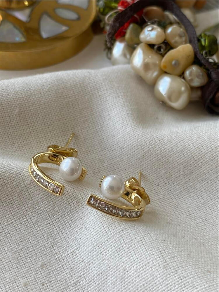Moda LUKKA - VIP 14K İncili Taşlı Kıvrım Küpe