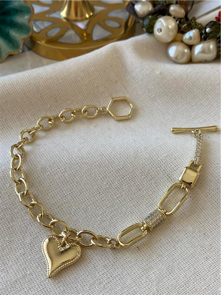 Moda LUKKA - VIP 14K Kalp Charmlı Çift Model Zincir Bileklik