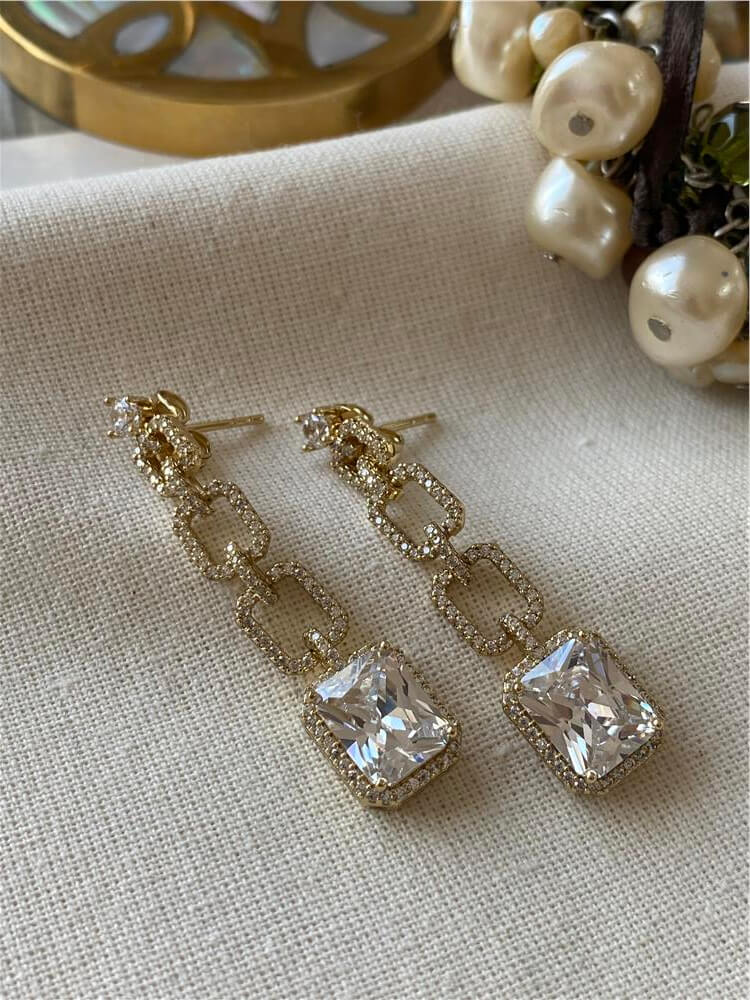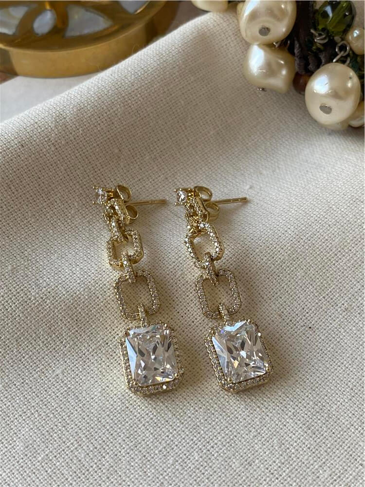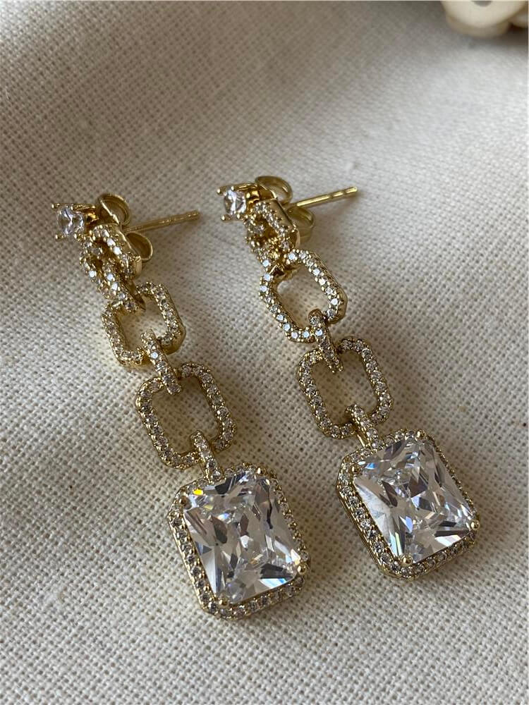 Moda LUKKA - VIP 14K Kare Taş Detaylı Sallantılı Küpe
