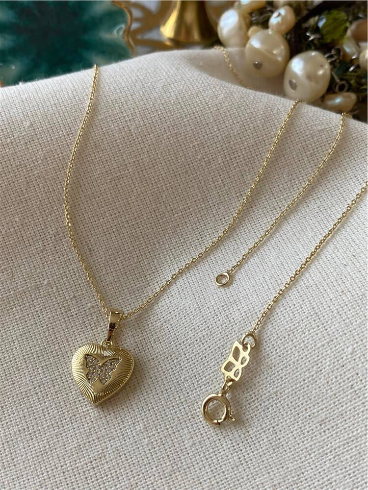 Moda LUKKA - VIP 14K Kelebek Figürlü Kalp Kolye