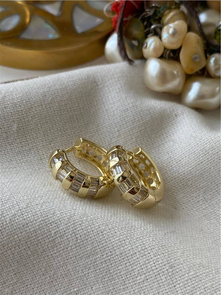 VIP 14K Kesme Taş Desenli Halka Küpe (31353)