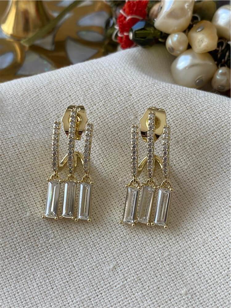Moda LUKKA - VIP 14K Kesme Taş Sallantılı Kaburga Küpe