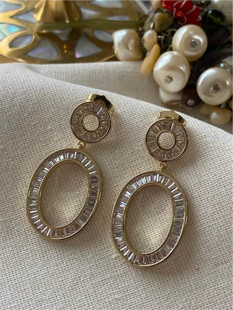 Moda LUKKA - VIP 14K Kesme Taşlı Oval Halka Sallantılı Küpe