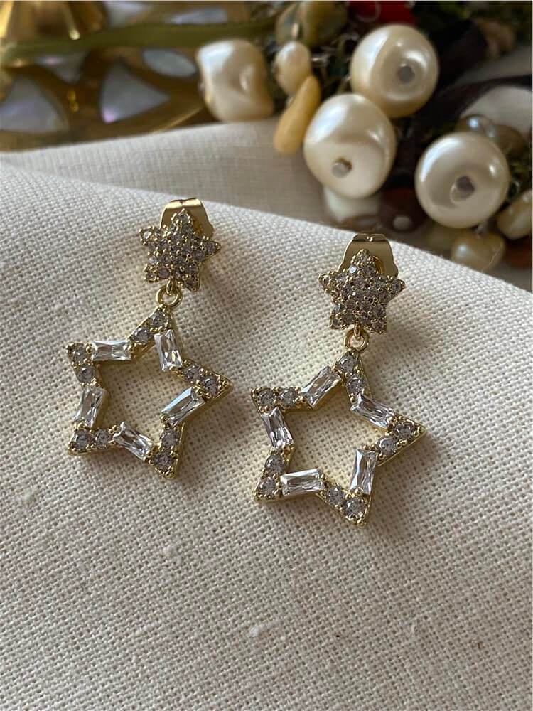 Moda LUKKA - VIP 14K Kesme Taşlı Yıldız Sallantılı Küpe