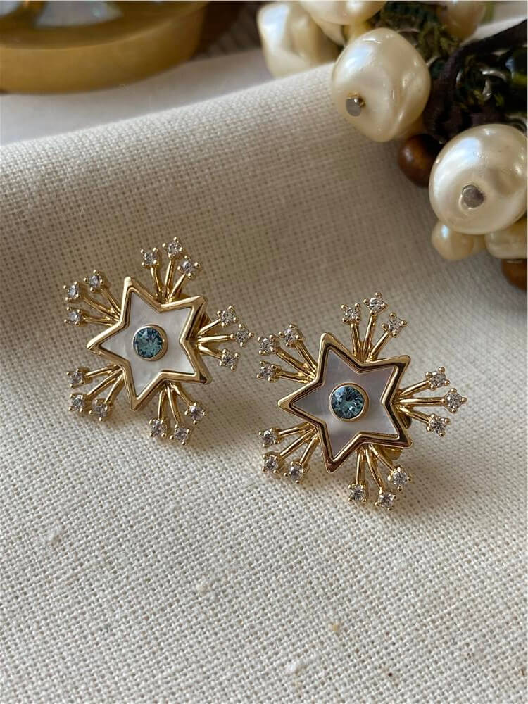 Moda LUKKA - VIP 14K Mavi Taşlı Sedefli Parlak Yıldız Küpe