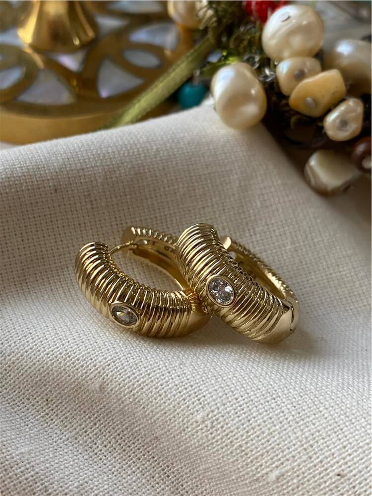 Moda LUKKA - VIP 14K Mini Taş Detaylı Çizgili Halka Küpe