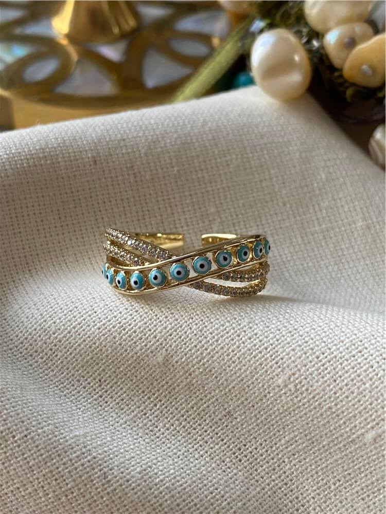 Moda LUKKA - VIP 14K Nazar Boncuklu Sarmal Ayarlanabilir Yüzük